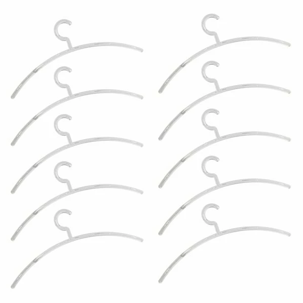 Zehnteiliges Set transparente Kleiderbügel aus Kunststoff mit interessanter Blasenoptik im Inneren und einer Breite von ca. 45 cm. So können Sie ihre Jacken, Mäntel oder Pullover knitterfrei aufhängen.