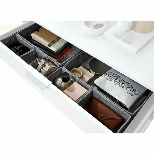Der perfekte Organizer für Ihren Schubkasten ist dieses 6-teilige Filz-Boxen-Set, damit Sie Ihre Utensilien stets griffbereit und übersichtlich in Ihrer Kommde oder Ihrem Schrank eingeordnet haben.