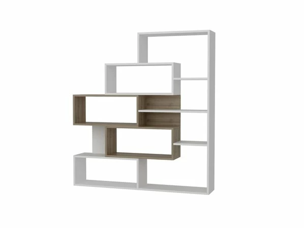 Das ausgefallene und moderne Design dieses Bücherregales in Weiß-Walnuss verleiht Ihren Räumen das gewisse Etwas. Die zahlreichen Ablagefächer bieten reichlich Platz für Ihre Bücher und Utensilien.