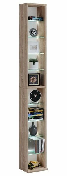 Das moderne CD-DVD-Regal RASATO XL in der Ausführung Sonoma-Eiche Nachbildung. Dieses Regal wird der Hingucker schlechthin in Ihrem Wohnambiente sein. Es besitzt insgesamt zehn offene Fächer, in denen Sie Ihre liebsten CDs und DVDs großartig in Szene setzen können. Ein besonderes Highlight sind die acht variablen Fachböden aus ESG-Sicherheitsglas, welches nicht nur höchste Stabilität und Belastbarkeit verspricht, sondern zudem noch grandios aussieht.