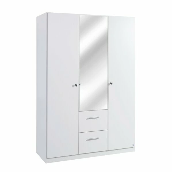 Der Drehtürenschrank in Alpinweiß sieht nicht nur wegen des eingebauten Spiegels sehr modern aus, sondern sorgt für ausgiebige Stauraummöglichkeiten deiner Utensilien, sodass du dir keine Sorgen um deine Ordnung machen musst.
