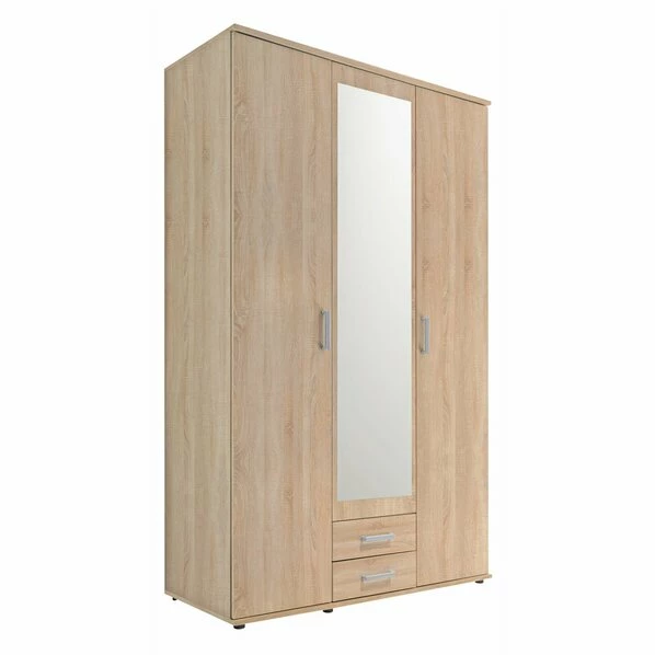 Hinter drei Türen, wovon eine mit einem Spiegel ausgestattet ist, finden Sie ausreichend Platz, um Ihre Kleidungsstücke unterzubringen. In zwei Schubkästen können Sie beispielweise Socken oder Unterwäsche sowie Accessoires verstauen.