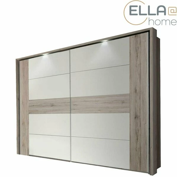 Ella@HOME Schwebetürenschrank – Sandeiche-weiß Hochglanz – 2-türig