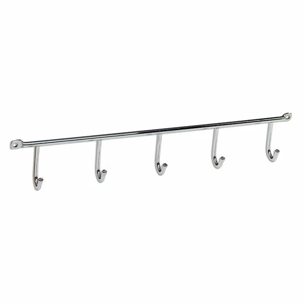 Um im Kleiderschrank noch mehr Ordnung zu haben, können Sie diese praktische Hakenleiste im Inneren des Schrankes anbringen. Die chromfarbene Hakenleiste aus Stahl stattet Sie mit 5 Haken aus, die für Ketten, Tücher, Schals etc. verwendet werden können.