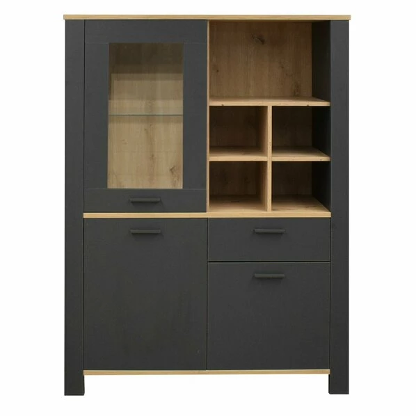 Highboard – Anthrazit Matt Lack – Asteiche – 152 Cm Hoch