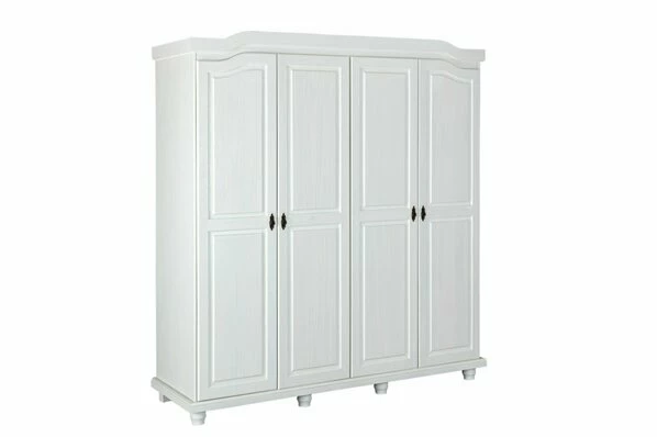 Kleiderschrank ISNY – Weiß – Kiefer Massiv – 4 Türen