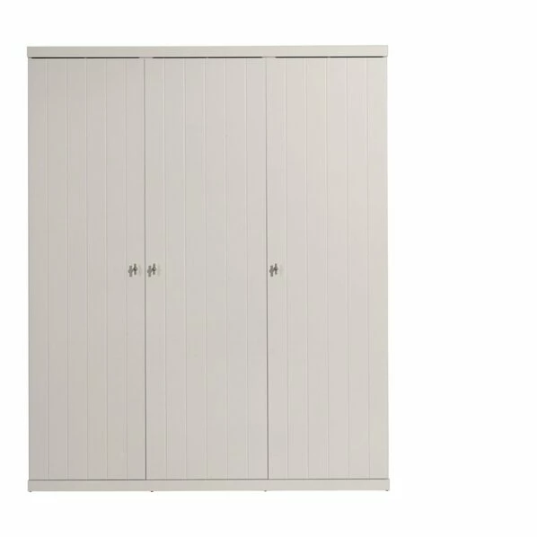 Der Kleiderschrank ROBIN ist aus weiß lackiertem Holz. Er weist die klassische Rillenfräsung für Landhaus-Optik auf. Er hat drei Türen hinter denen sich eine Menge Stauraum befindet. Insgesamt sechs Einlegeböden und zwei Kleiderstangen bieten sich Ihnen für Kleidung und allerlei andere Utensilien. Innen hat der Kleiderschrank zwei Mittelleisten, die die Kleiderschrankelemente voneinander trennt.