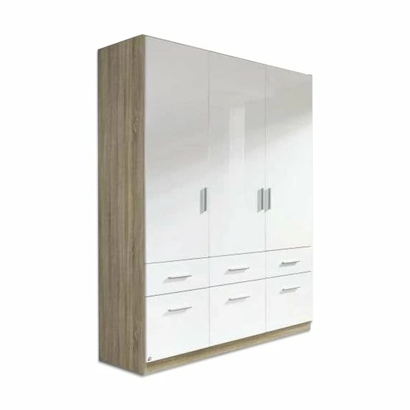 Wunderbar moderner Kleiderschrank in der Farbkombination Sonoma Eiche und Weiß Hochglanz.
