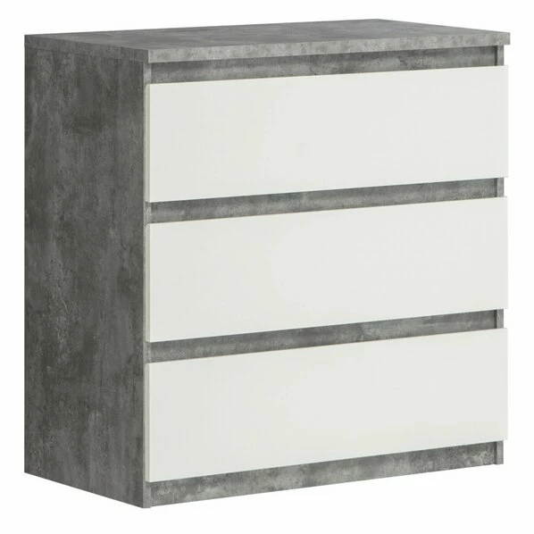 Diese Kommode, die in Betonoptik und Weiß gehalten ist, bietet mit ihren großen Schubfächern eine sehr gute Möglichkeit Verschiedenes zu verstauen.