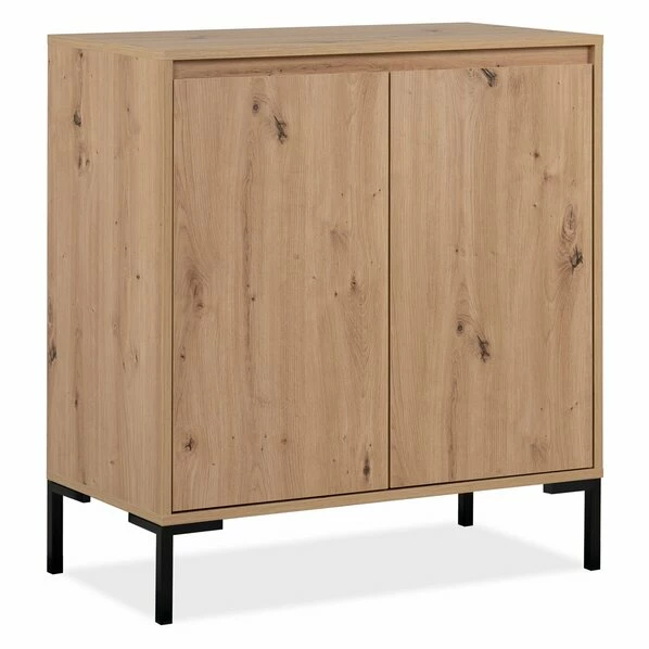Hübsche Kommode in Artisan Eiche Nachbildung. Mit zwei Türen und einem Einlegeboden ausgestattet kannst du beispielsweise Dekoration und andere Utensilien verstauen. Durch ihr helles und freundliches Design versprüht die Kommode ein wohnliches Ambiente.