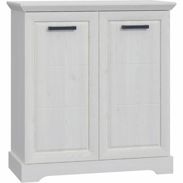 Mit ihrem Design im modernen Landhausstil wird diese Kommode in Sibiu Lärche zu einem Hingucker in Ihrem Zuhause. Ihre zeitlose Optik in Weiß wird durch die Tiefziehfronten ergänzt. Dank der schwarzen Metallgriffe können Sie sie mit unterschiedlichen Einrichtungen kombinieren. Hergestellt ist die Anrichte aus foliertem Holzwerkstoff in einer Lärche-Nachbildung. Mit den Maßen von BxHxT ca. 95 x 104 x 45 cm lässt sich der Schrank wahlweise im Flur, in Ihrem Wohnbereich oder auch im Schlafzimmer unterbringen. Hier bietet er hinter seinen mit Dämpfungsbeschlägen ausgestatteten Türen reichlich Stauraum. Auf den vier Einlegeböden können Sie nach Belieben Bücher, Wohnaccessoires und weitere Dinge verwahren.
