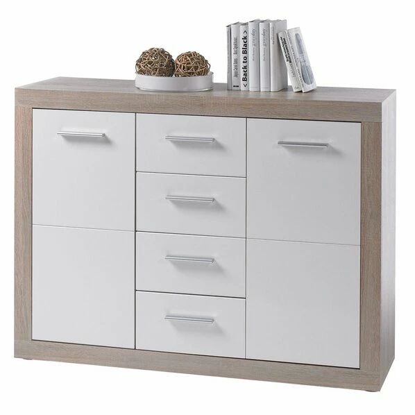 Kommode – Sonoma Eiche – Weiß – 117 Cm
