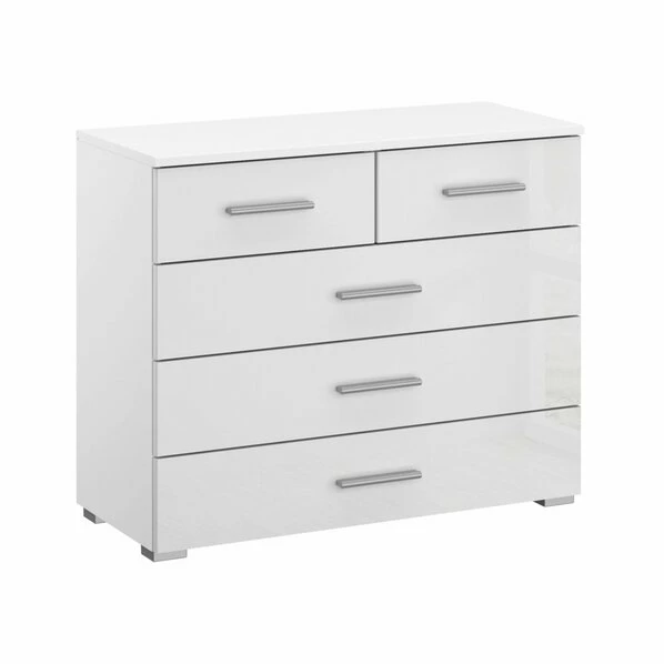 Kommode – Weiß Hochglanz-alpinweiß – 5 Schubkästen – 80 Cm