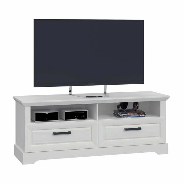 Das Lowboard in Sibiu Lärche Nachbildung bietet Ihnen ausreichend Platz für Ihren Fernseher und Zubehör. In den zwei offenen Fächern können Sie TV-Receiver oder Spielekonsolen unterbringen. Spiele, Bücher oder sonstige Unterlagen finden in den zwei Schubkästen Ihren Platz. Dieses Lowboard ist im Landhausstil gehalten und wird der neue Hingucker in Ihrem Wohnzimmer werden.