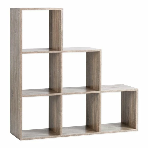 Dieser Raumteiler hat eine klassiche Holzoptik in Sonoma Eiche und besteht aus 6 offenen Fächern. Das Stufenregal eignet sich perfekt um ein Zimmer in unterschiedliche Bereiche einzuteilen und bietet mit seinen Fächern gleichzeitig viele Abstell- und Dekorationsmöglichkeiten. So lässt sich auf einfache Art und Weise ein getrennter Schlaf- und Wohnbereich erzeugen.