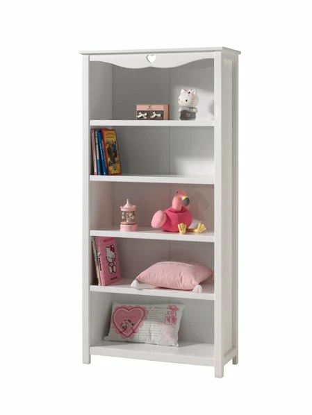 Das offene Regal AMORI mit 5 Fächern und dekorativer Zierleiste mit Herz-Ausschnitt bietet viel Stauraum für Bücher oder Dekorationsgegenstände. Es ist weiß lackiert und lässt sich super mit weiteren Elementen aus dem gleichnamigen Schlafzimmerprogramm kombinieren.