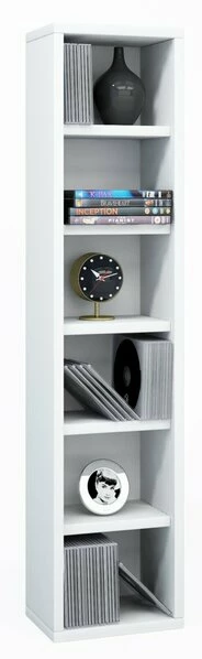 Das Regal “Elementa” in Weiß mit Holzstruktur-Nachbildung bietet Ihnen Platz für 102 CDs oder 36 DVDs. Eine beliebige Erweiterung kann jederzeit vorgenommen werden, da die Säulen an der Rückseite miteinander befestitgt werden können. In der Höhe misst das Regal ca. 91,5 cm.