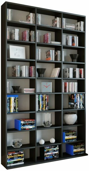 Das schwarze Regal MEGOSA MAXI ist individuell einsetzbar. Es verschmilzt dank seines einfachen Aussehens mit vielen Wohnstilen und lässt sich vielseitig kombinieren. 16 variable und 5 fixe Einlegeböden schenken Ihnen die Möglichkeit, den Stauraum nach Ihren Bedürfnissen einzuteilen. Etwa 1080 CDs finden hier einen Platz.