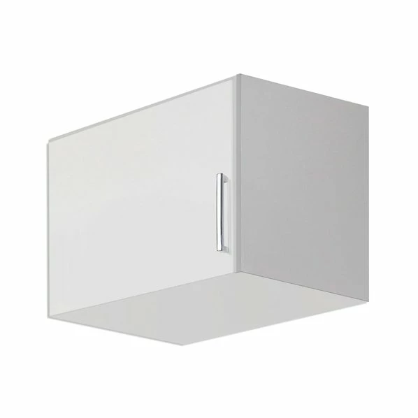 Der Schrankaufsatz hat einen alpinweißen Korpus und eine Front in Weiß Hochglanz. Die Tür hat den Anschlag links, dahinter befindet sich ein Fach für Ihre persönlichen Gegenstände.