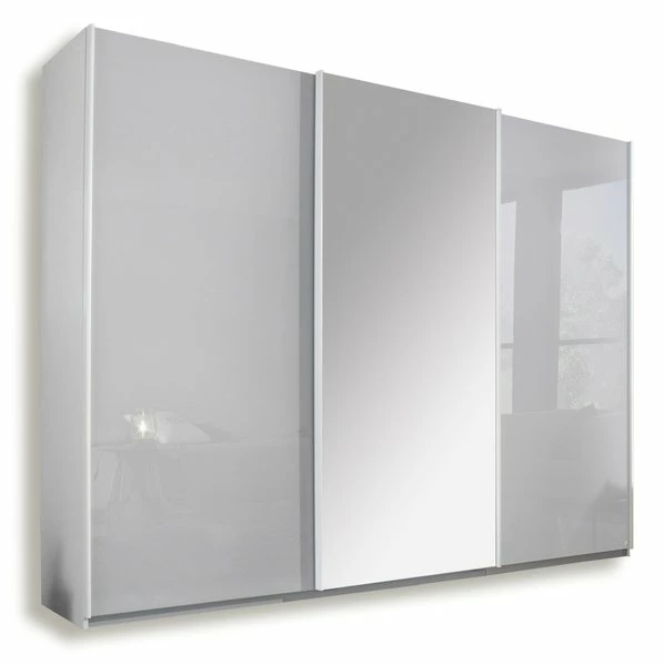 Schwebetürenschrank – Alpinweiß-seidengrau – 271 Cm