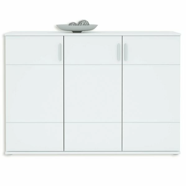 Zeitloses Design und viel Stauraum bietet Ihnen dieses Sideboard in Alpinweiß. Es ist mit drei Türen und zwei Einlegeböden ausgestattet. Egal ob in der Diele, dem Wohn- oder Schlafzimmer – diese Sideboard bietet Ihnen so viele Möglichkeiten und überzeugt immer mit einer wohnlichen Optik und großzügigem Platzangebot.