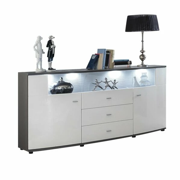 Sideboard GATE – Weiß Hochglanz – Anthrazit – 160 Cm