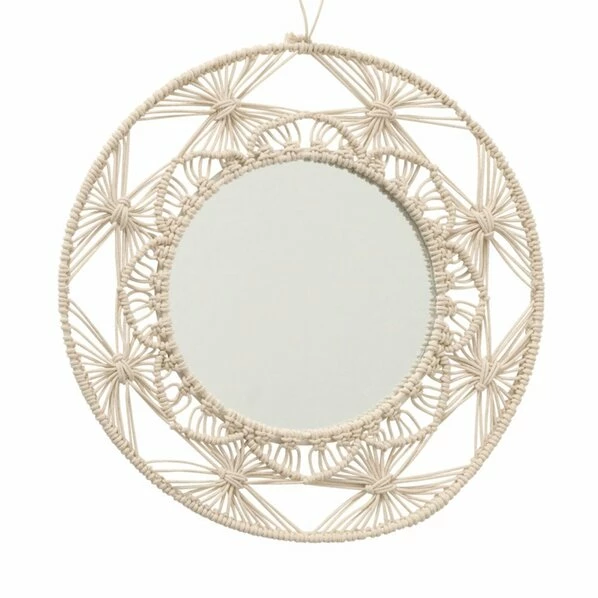 Spiegel – Creme – Makramee – Ø 37 Cm