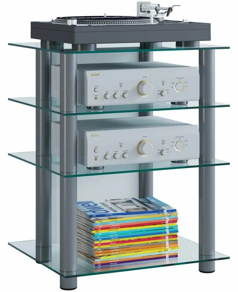 TV-Rack – Silber-klar – 4 Glasböden – 59 Cm Breit