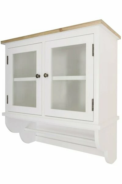 Dieser wunderschöne Wandschrank mit Glastüren wird Ihre Wohnung aufwerten. die Türen aus Glas besitzen einen Magnetverschluss für einen festen Halt. Die Rundstange ist feststehend und die Scharniere aus Metall. Die Griffe, ebenfalls aus Metall, sind edle Ringgriffe, die dem Schrank eine luxuriöse Optik verleihen. Des Weiteren verfügt die Wandablage über einen Einlegeboden, der Ihnen Platz für jegliche Haushaltsartikel schafft. Der Schrank verzaubert durch Liebe zum Detail, da er schön verziert ist.